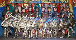 U prvoj polovini 19. veka, iz tradicije uličnih pevača, razvilo se Sicilijansko pozorište lutaka (lat. Pupus – lutka). Predstave sa marionetama izvode se i danas u većim gradovima. Lutke su ručni rad lokalnih majstora, a tema su dvoboji vitezova sa dvora Karla Velikog i borba protiv Saracena. Za razliku od ostalih marioneta Sicilijanske su potpuno pokretne : ruke, noge i najvažnija je pokretljivost glave. Poznati pupari (majstori-umetnici) dolaze iz porodica Kutikio (ital. Cuticchio, koja je više puta gostovala u Beogradu) i Arđento u Palermu, kao i braća Napoli iz Katanije i braća Mauceri iz Sirakuze. Godine 2001, ovaj običaj je stavljen na UNESCO-ov spisak usmene i nematerijalne baštine čovečanstva.